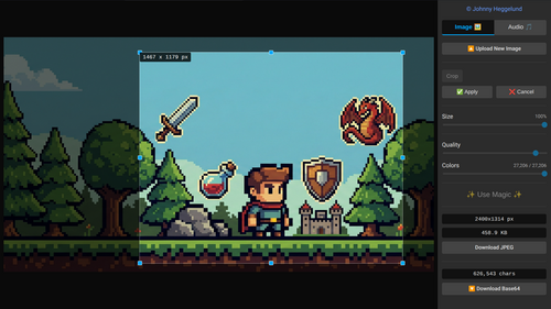 This tool converts images and audio to base64 code. It has compression, a preview, and a crop tool.