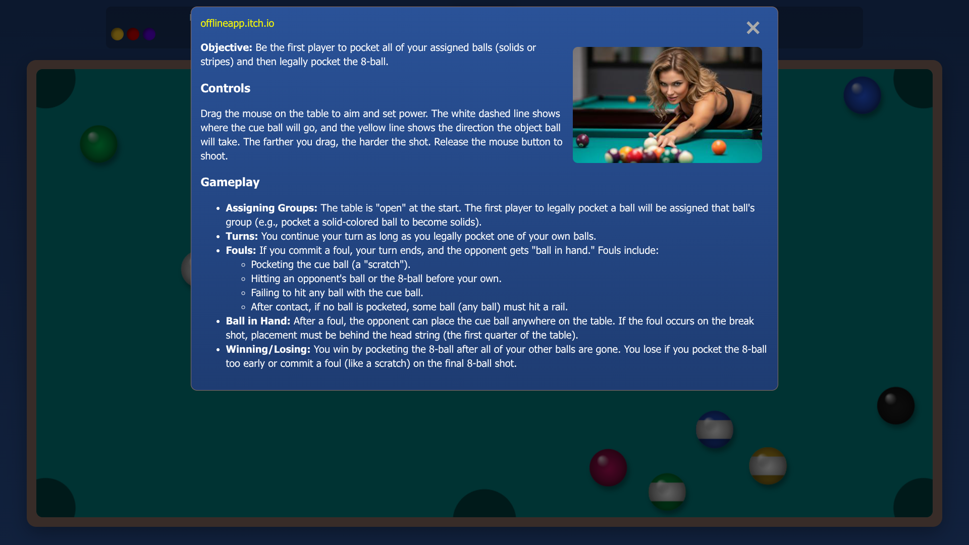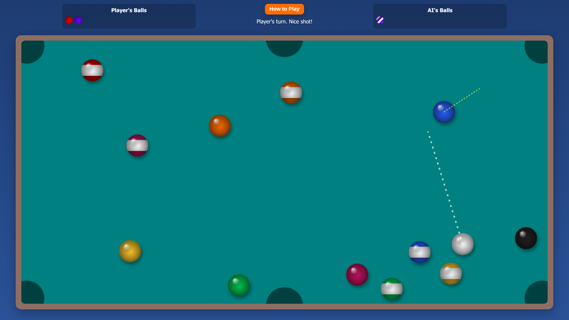 Challenge a skilled AI to a classic game of billiards and be the first to clear the table!